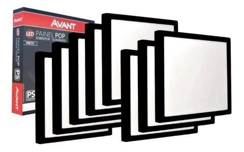Kit 8x Paineis Avant Sobrepor Quadrado Led 24w Preto 30cm